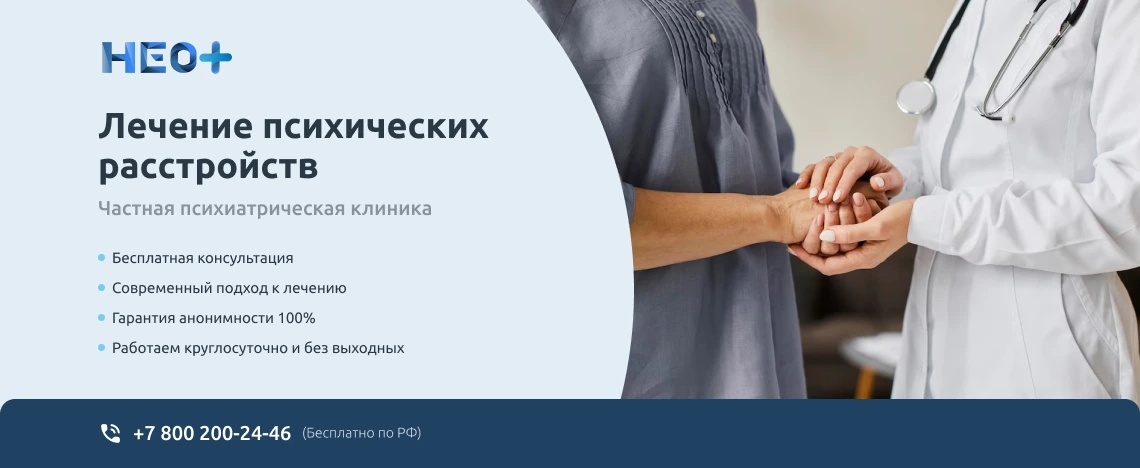Записаться на прием к врачу-психиатру можно на официальном сайте клиники «НеоПлюс» в Кстово или по телефону ☎️ +7 (800) 200-24-46. Звоните нам, не запускайте проблему. Мы знаем, как вернуть здоровье и покой в Вашу семью!